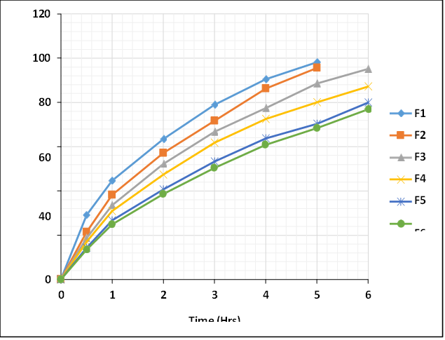 Figure 3: Comparative In vitro Drug Diffusion Profile of Formulation F1 to F6