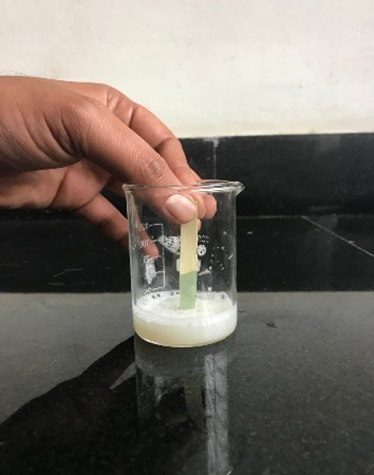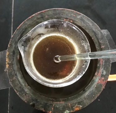Preparation of soap base: To prepare soap base add coconut oil (50ml), heat oil for 5 min. on water bath then add NaOH solution to oil (10 gm NaOH+ 100 ml H2O) stir continually for 8 -10 min, add reetha (5ml) stir for 2 min add 5 ml glycerine stir 2- 3 min continuous, Add steric acid (1gm) for hardening, 2ml ethanol as solvent and stir for 5-8 min.21