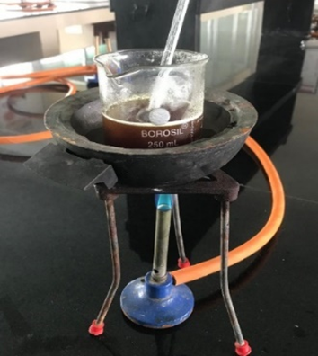 Melting the base: The soap base was cut into the small piece and then put into the beaker for double boiling method and heat the glycerine cubes until its completely melt.7
