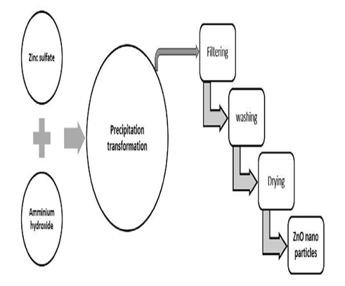 Zinc sulfate heptahydrate (ZnSO4 (H2O)7) and Ammonium hydroxide (NH4OH) were the two starting materials for the mix of ZnO nanoparticles. The designed procedure for ZnO nanoparticles by arrange precipitations strategy. Zinc sulfate mix with refined water and make a course of action of zinc sulfate. At that point incorporate ammonium hydroxide drop adroit with the help of appealing stirrer and lab stirrer. Homogeneous suspension happens, at that point sifting, washing and drying the course of action utilizing ultrasonicator and centrifugation .after drying the compound are zinc oxide nanoparticles.