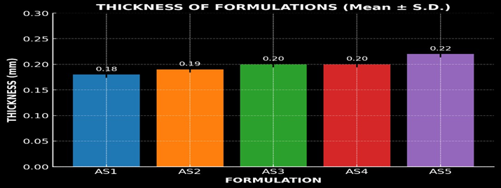 The formulation AS2 showed a better in-vitro drug release profile across the cellulose membrane when compared to the other formulations. This might be attributed to the suitable combination of polymers, plasticizer concentration, and the effect of permeation enhancer used. Thus, formulation AS2 is considered the optimized formulation. The results are depicted in Table number 7 and figure 19.