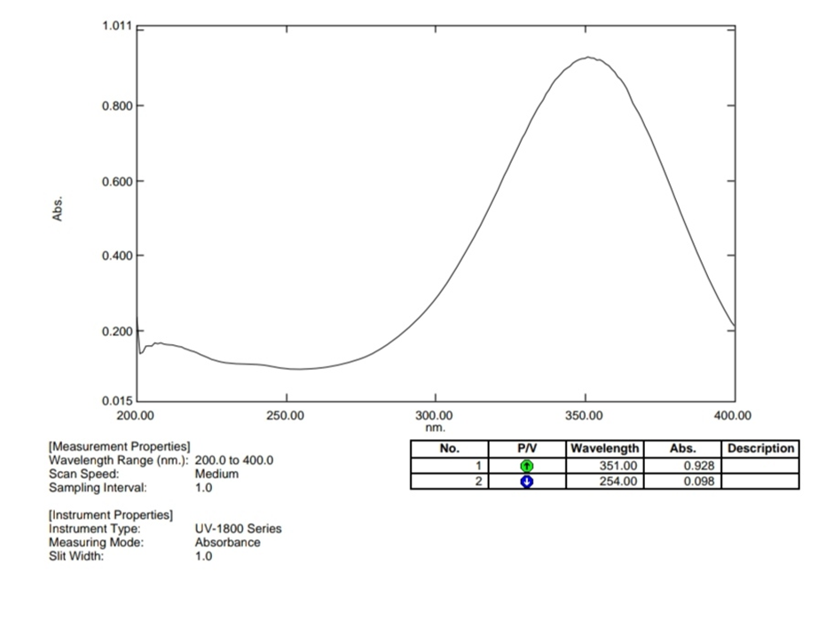 By combining 100 mg of the gel with 10 mL of methanol, the drug concentration of each batch of Tretinoin nanoemulsion gel formulation was assessed independently. To obtain clear solutions, the resultant solutions were filtered through a filter. Further were centrifuged 10000 rpm for 30 min. Using methanol as a blank, the drug content of these samples was analyzed at (λmax 351 nm ) by using UV-spectrophotometer scanned [18].