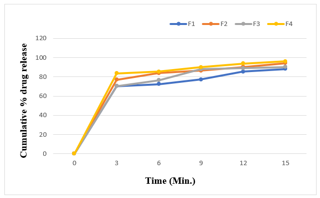 Figure 6: Cumulative % drug release profile of formulation F1-F4.