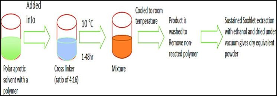 Combine the polymer with a suitable solvent, preferably a polar aprotic solvent like dimethylformamide (DMF) or dimethyl sulfoxide. (DMSO) Then, in a separate container, add this combination to the cross linker. Surpasses the quantity, the cross linker/molar ratio 1:4 is the optimum ratio. The reaction that took place at the temperature ranges