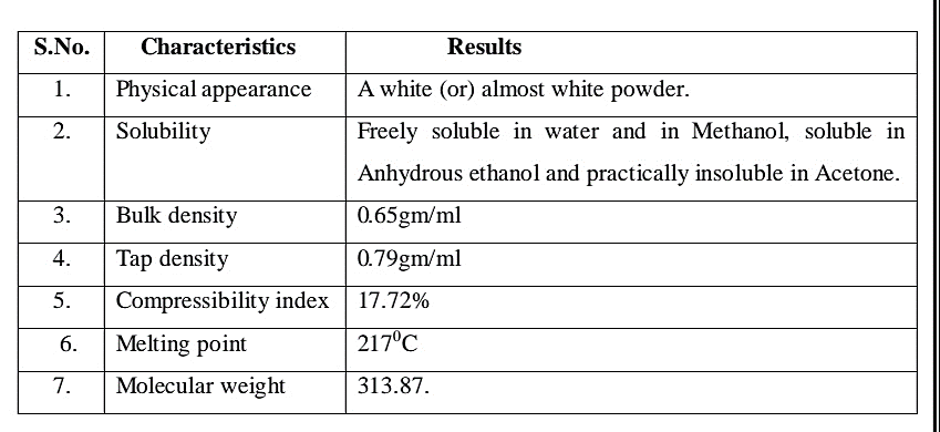 Table no.1 Pre Formulation Studies