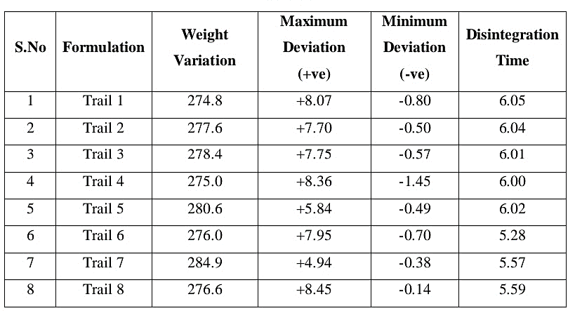 Preformulation Characteristics of blend of all formulations.