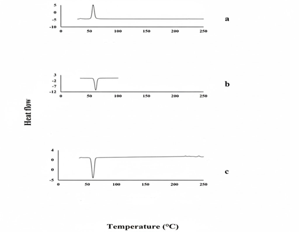 It was found that the DSC thermogram of GM showed a single endothermic peak at 212.44 ?C. The DSC thermograms of PEG 6000 showed endothermic peaks at 61.96 ?C respectively (Figure 3.7).