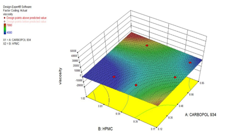 All other formulation and processing variables were kept invariant throughout the study. The % cumulative drug release and viscosity was selected as dependent variables.