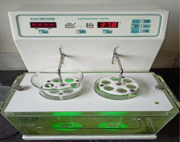 These is carried out for same as hardness testing. Friability testing is carried out by using Roche Friabilator operated at specific speed for specific time such 25 rpm for 4 min. [16]