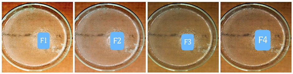 As indicated by the standard deviation, the weight variation was highest for F3 (1.40 mg) and F1 (1.27 mg), which coincidentally had the lowest mean weights.