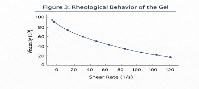 The gel exhibited pseudoplastic (non-Newtonian) flow; viscosity decreased with increasing shear rate [104]. This behavior ensures smooth application under the mechanical stress of rubbing but adequate thickness when static, preventing flow from the site of application [105].