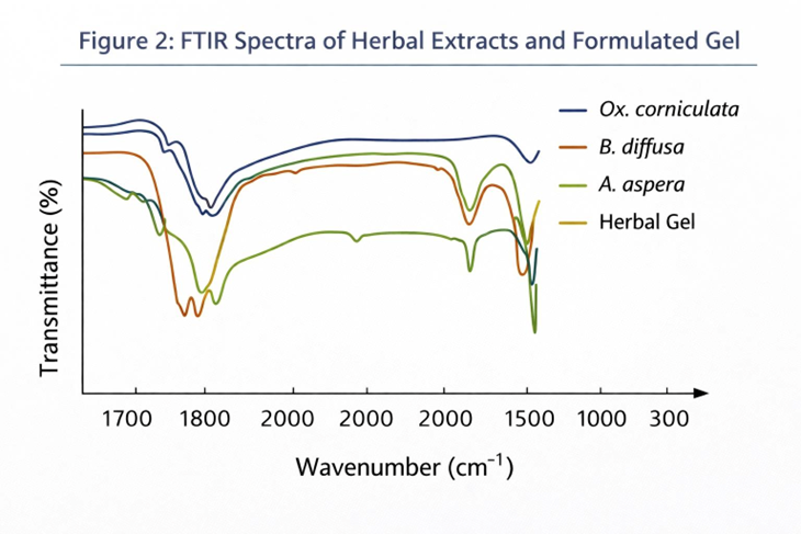 Figure 2. FTIR Spectra of Herbal Extracts and Formulation Gel