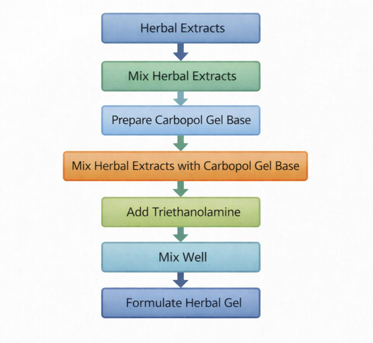 The combined herbal extracts were dissolved in minimal ethanol and added to the hydrated polymer base under gentle stirring.