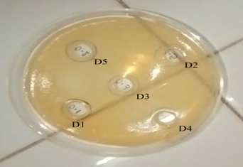 Maximum zone of inhibition of Melia Azedarach L extractwas found to be 8.0 mm at 1.0 ml andHygrophila Auriculata extract was found to be 7.0 mm, at 0.9ml dilution respectively. That’s why I had chosen 1.0ml and 0.9ml concentration of drug to use as in combinations. (12 plates for each combination).