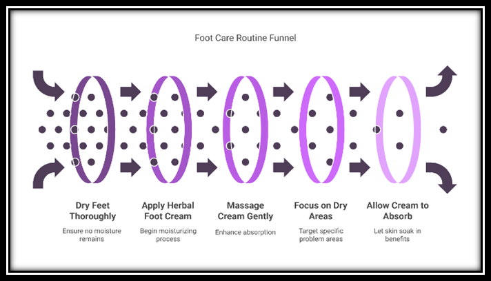 From this work, we conclude that herbal foot cream have Hydrating, Nourishing, and Curing dry, cracked heels, the foot cream initiative highlights the significance of foot care. Ingredients in the formulation have been carefully chosen to guarantee both efficacy and safety. The product's moisturizing and healing qualities have been assessed through testing and research, making it appropriate for frequent usage. This foot cream treats common foot-related problems and provides an accessible and reasonably priced skincare solution. It is a useful complement to everyday personal care routines because of its calming and protecting properties, which improve foot health. The project effectively illustrates how this composition may enhance general foot health.