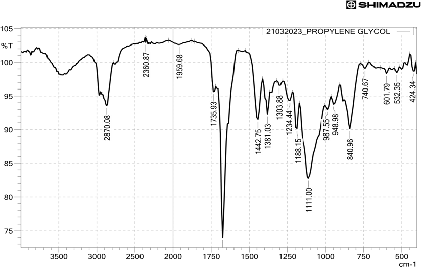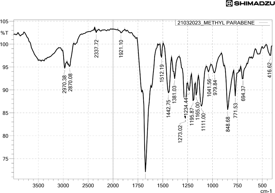 To investigate the compatibility of drugs and excipients for integration into emulgel. The FTIR spectra of pure drugs and drug-excipients combinations were between 4000-400 cm−1. No more peaks belonging to functional groupings were found. There were no significant differences between the IR peaks of lemongrass oil and lemongrass oil-excipients mixes, indicating that the medicine is stable in the presence of all excipients.