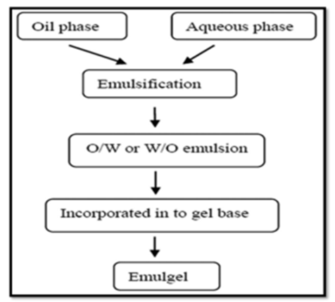 Topical drug delivery methods minimize the hazards associated with IV treatment and circumvent first-pass metabolism by applying the medication directly to the skin. Despite their variety, they frequently have trouble efficiently administering hydrophobic medications. Emulgels, which combine thixotropic qualities, ease of application, and improved skin penetration, present a viable alternative. Emulgels consist of both emulsion and gel components. Emulgels get over the drawbacks of traditional gels used for hydrophobic drug delivery by means of this integration.[5]&[6]