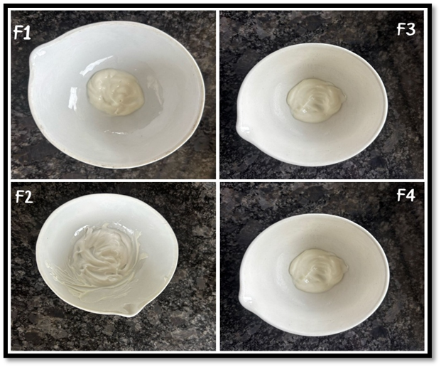 The physical appearance of the cream can be observed by its color, roughness, and was graded.
