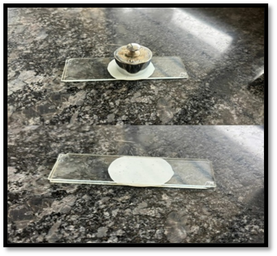 The spreadability of cream formulation was determined by using parallel plate method. An adequate amount of sample is taken between two glass slides and a weight of 10 g is applied on the slides for 5 minutes.
