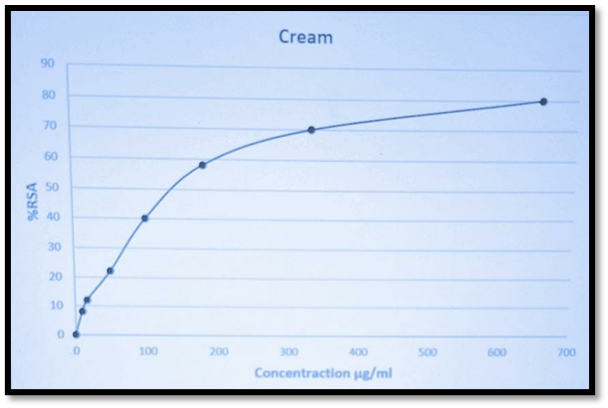 The cream’s free radical scavenging ability was tested using DPPH solution at 517 nm.