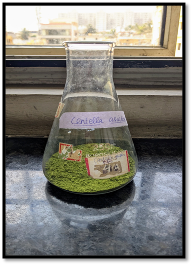 Tinospora cordifolia (family Menispermacea) and Centella asiatica (family Umbellifereae) were gathered from the neighborhoods of Bengaluru, Karnataka.