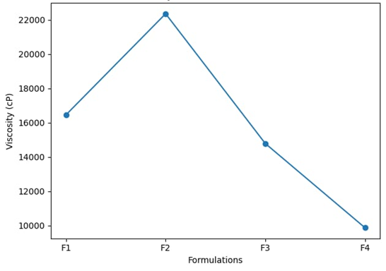 The formulation (F2) was considered better than the other formulation. it exhibited optimum viscosity ensures good spreadability, ease of application, and adequate retention at the site of application. An appropriate viscosity also contributes to better physical stability and uniform drug distribution within the gel. Viscosity of the formulation was demonstrated in Figure no.8.