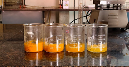3. Viscosity: The sample was taken in the beaker and was allowed to rotate at 20 and 30 rpm respectively at spindle no 64. At each speed the reading was noted. Average of 3 readings was taken.