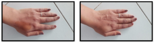 Make a 1 square centimetre mark on the dorsal surface of the left hand. When applying the gel, the designated area was noted along with the time. At regular intervals for up to 24 hours, irritability, erythema, and edema were assessed and reported.[5]