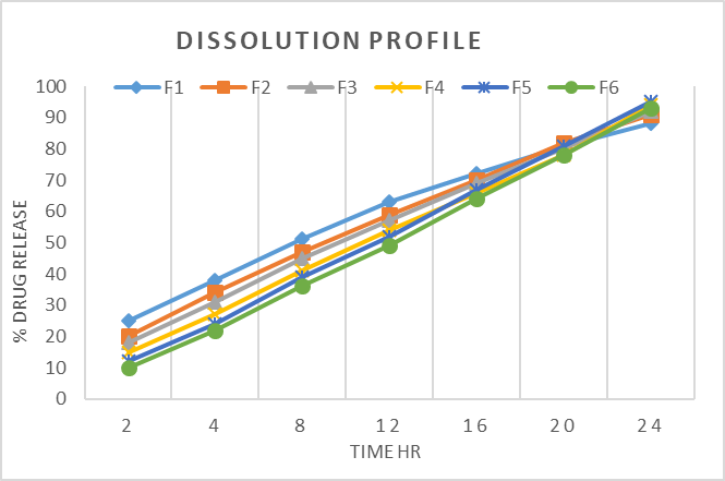 Figure 3: Dissolution profile graph of formulation F1-F6