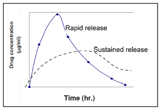 Figure 2: A regular release product and sustained release drug plasma drug concentration