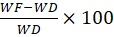 Moisture loss % = WF-WDWD×100