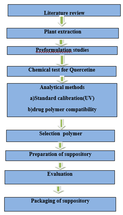 The plant extract was prepared using the Soxhlet extraction method.Suppositories were prepared using the fusion molding technique, with polyethylene glycol (PEG-4000) along with suitable excipients such as sodium bicarbonate, propyl paraben, glycerine, and antioxidants. Multiple formulations were developed by varying polymer concentrations to achieve extended drug release.