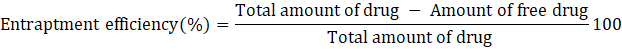 Entraptment efficiency(%)=Total amount of drug - Amount of free drugTotal amount of drug 100