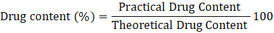 Drug content (%)=Practical Drug Content Theoretical Drug Content 100