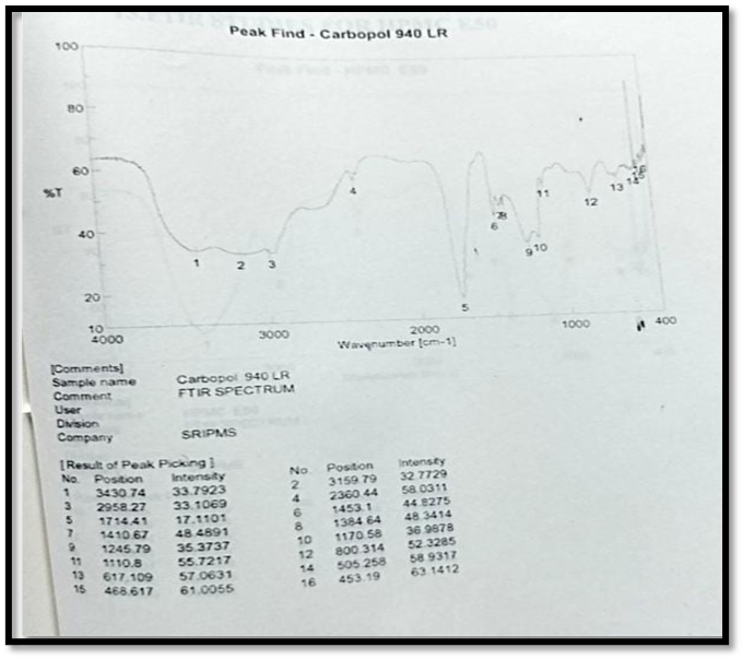 Fig: 13 FTIR Studies For Carbapol 940 LR