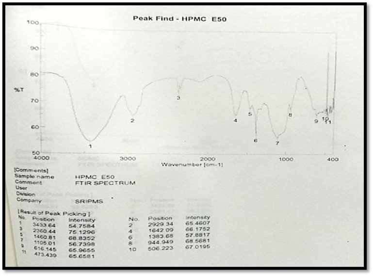 Fig: 14 FTIR Studies For HPMC E50