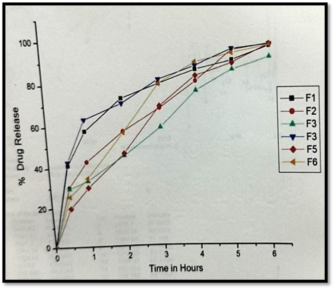 Fig: 11 In-Vitro Drug Release Studies For The Formulation F1-F6