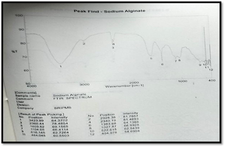 Fig: 16 FTIR Studies For Sodium Alginate