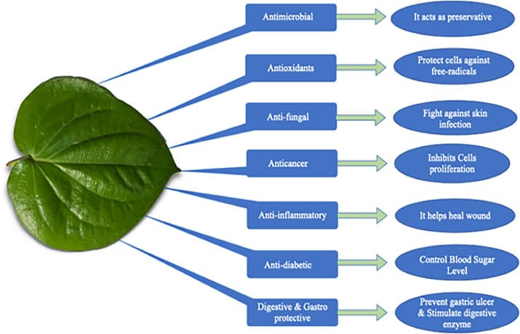 1. Active Compounds: Betel leaves contain beneficial bioactive compounds such as polyphenols, flavonoids, and alkaloids (like arecoline). However, some of these compounds may pose risks at high doses. [38]