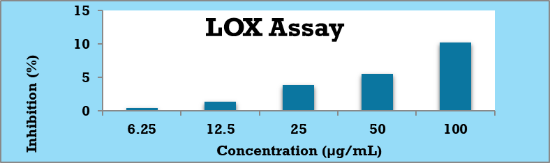 The graph shows that the test compound inhibits LOX activity in a dose-dependent manner, with strong inhibition at higher concentrations and moderate inhibitory potency.