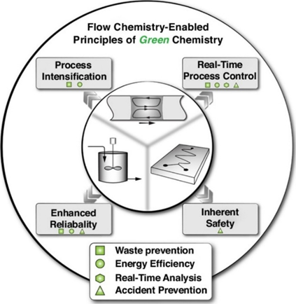Fig. 3. Integration of Flow Chemistry with Green Chemistry for Sustainable Processes