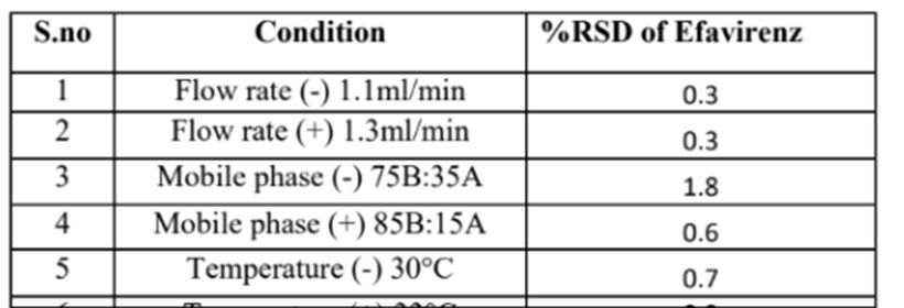 Table 8 Robustness data for Efavirenz