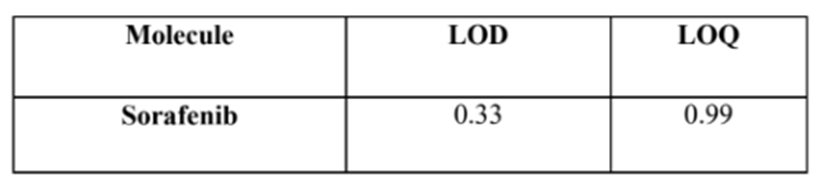 Table 2 Linearity table for Efavirenz.