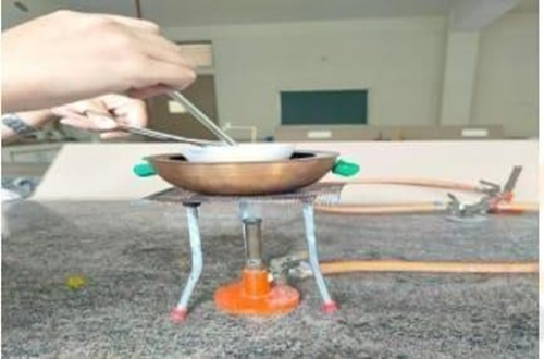 A water bath is kept on the burner and is filled with water for boiling.
