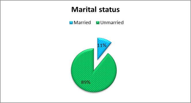 Among the total subjects, 56(10.6%) were married. 473(89.4%) were unmarried individuals.