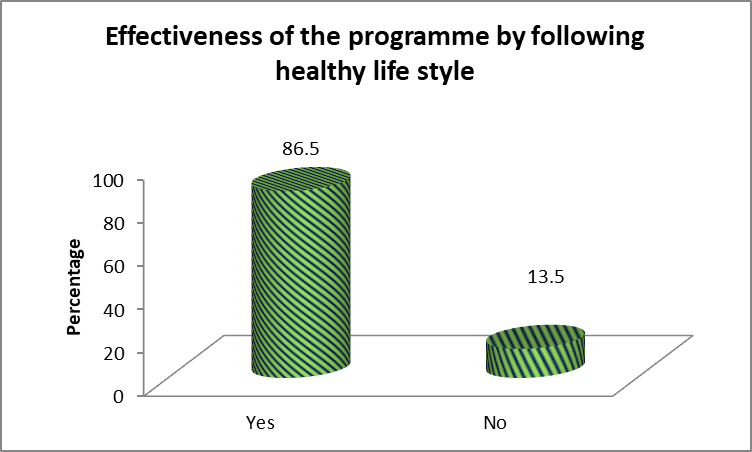 192(86.5%) of subjects were following healthy lifestyle after awareness programme.
