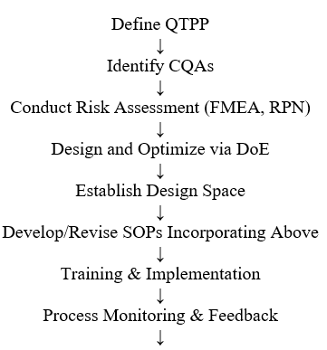 Achieving successful integration of Quality by Design (QbD) into Standard Operating Procedures (SOPs) demands a structured and strategic methodology. Such alignment not only ensures regulatory compliance but also enhances product quality, operational consistency, and lifecycle management.