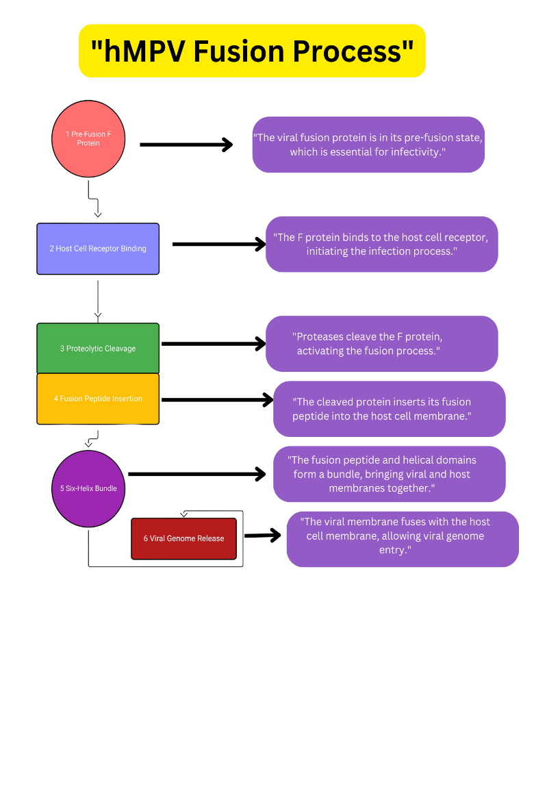 Figure 2: HMPV Fusion Process (This Diagram Illustrates The Key Steps Involved In The Fusion Process Of Human Metapneumovirus (HMPV) With A Host Cell, Which Is Crucial For Viral Infection.)
