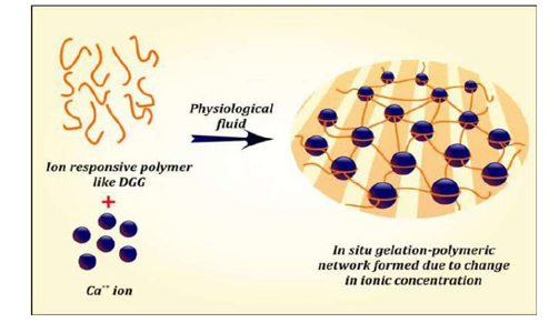 In ocular drug delivery, natural polymers such as alginic acid, inulin, and xyloglucan are commonly used, with inulin being the most common. For local eye treatments, drugs such as autonomic agents, anti-inflammatory medicines and antimicrobials help relieve discomfort in conditions like glaucoma. To enhance drug bioavailability, viscosity enhancers like carboxymethyl cellulose, hydroxypropyl methyl cellulose, carbomers, and polyvinyl alcohol are added to formulations. These substances help increase the formulations thickness, thereby prolonging its retention on the eye’s surface and improving drug availability, while also offering manufacturing ease. Additionally, penetration enhancers often the same classes of drugs used therapeutically, such as anti-inflammatory drugs, autonomic agents, and antimicrobials aid in reducing ocular discomfort and improving drug absorption. Traditional eye drops systems frequently suffer from poor drug retention and reduced therapeutic effects due to rapid tear turnover and drainage. To address these limitations and improve bioavailability, in-situ gelling systems were developed, which transform into gels upon contact with the eye, allowing the drug to stay longer at the site of the action.