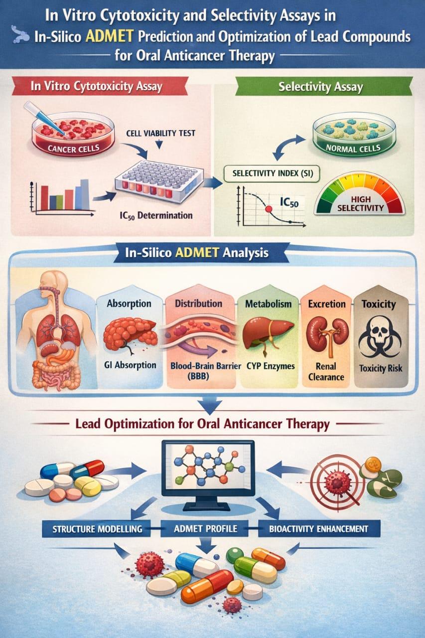 Dr. P. Aravanan, Dr. D. Dhachanamoorthi, N. Nandhini, J. Ajai, M. Lakshmanan, C. Anushka, V. Mohammed Navas, In-Silico ADMET (Absorption, Distribution, Metabolism, Excretion, and Toxicity), Prediction and Optimization of Lead compounds for Oral Anticancer Therapy., Int. J. of Pharm. Sci., 2026, Vol 4, Issue 3, 92--104. https://doi.org/10.5281/zenodo.18849848